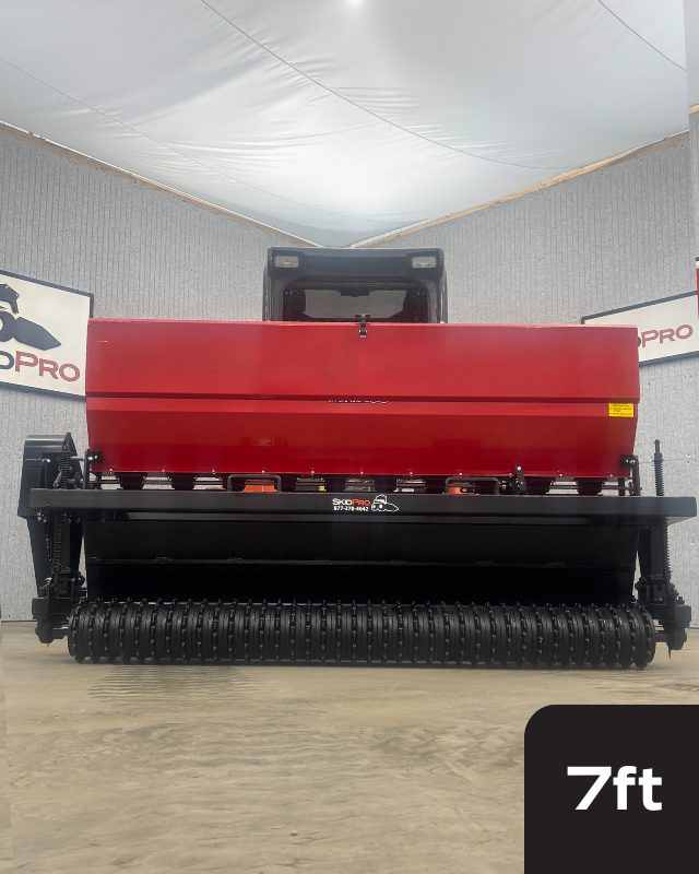 Looking for a better, faster way to put down seed? The Skid Pro Skid Steer Seeder is a landscaper’s dream and superior in every way compared to a traditional broadcast seeder! Designed for efficiency and precision, this skid steer seeder attachment allows you to seed large areas quickly, ensuring uniform coverage and excellent germination rates. Ideal for residential, commercial, and agricultural applications, the Skid Steer Seeder offers adjustable settings to accommodate different seed types and soil conditions. Built to last with high-quality materials, this seeder helps you complete landscaping projects faster while reducing labor costs.