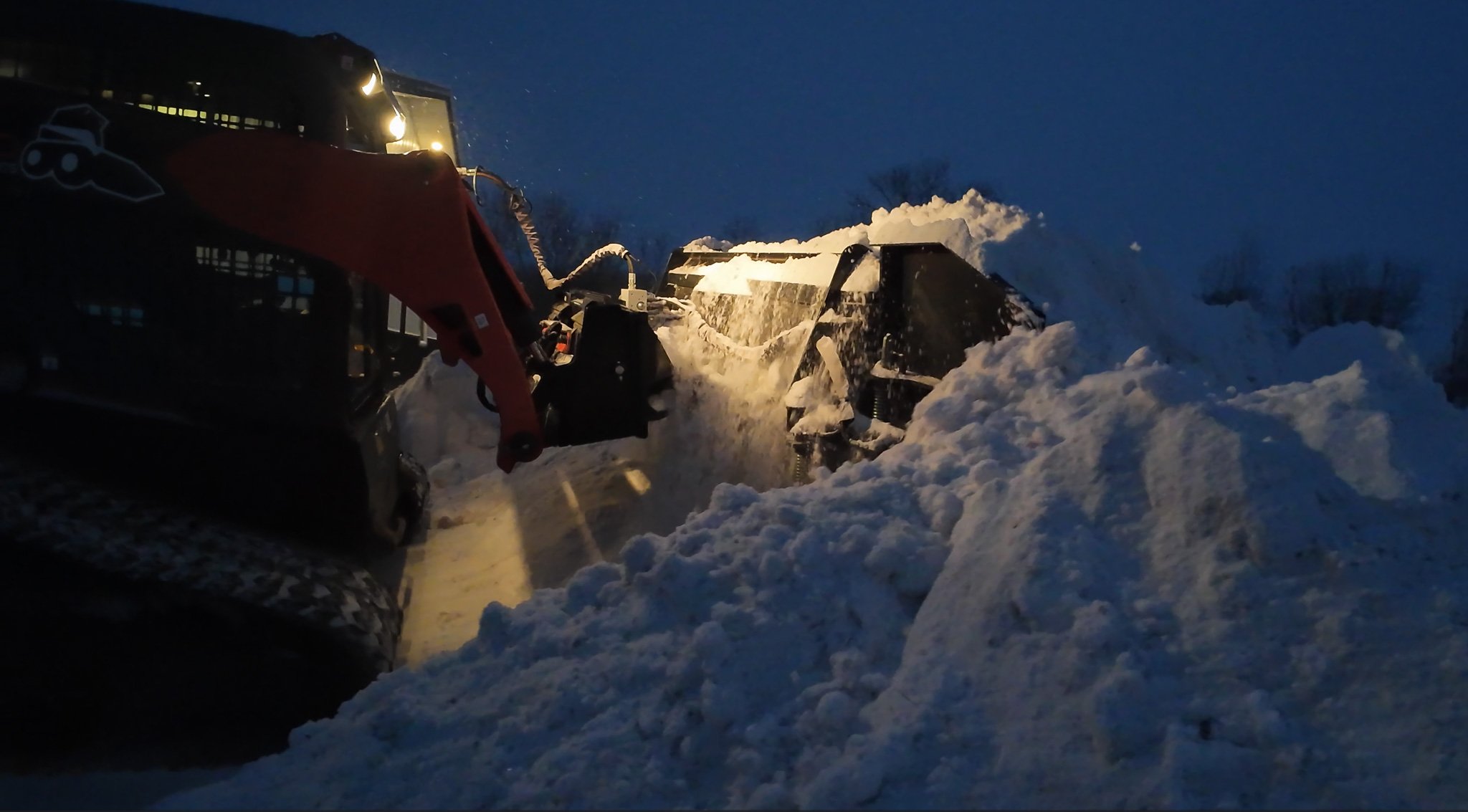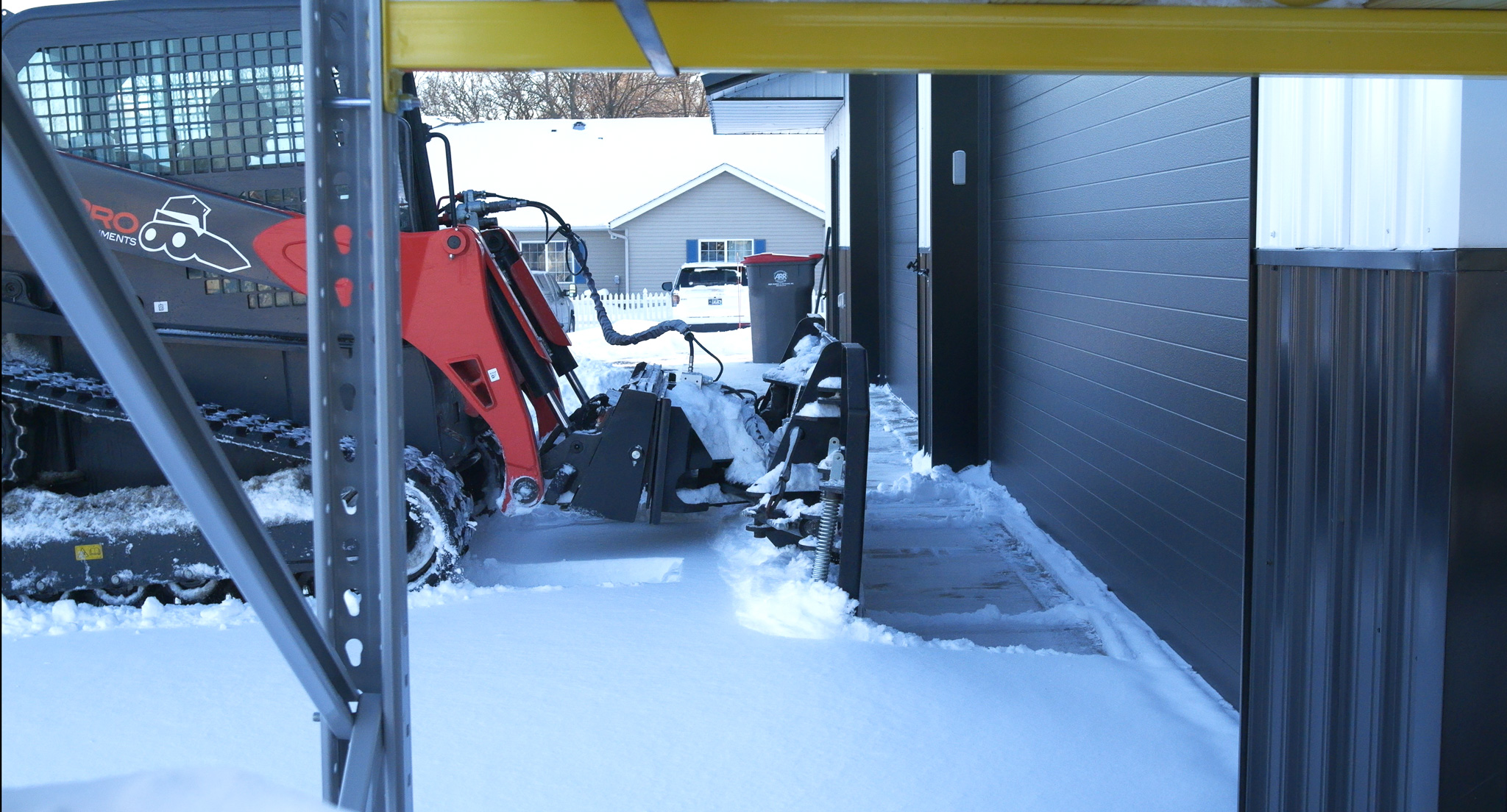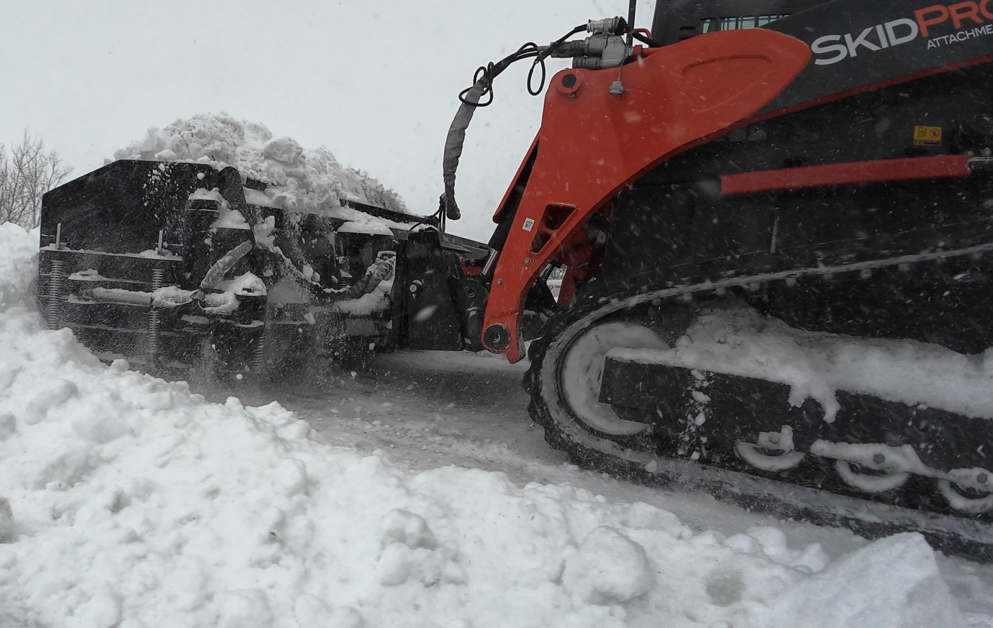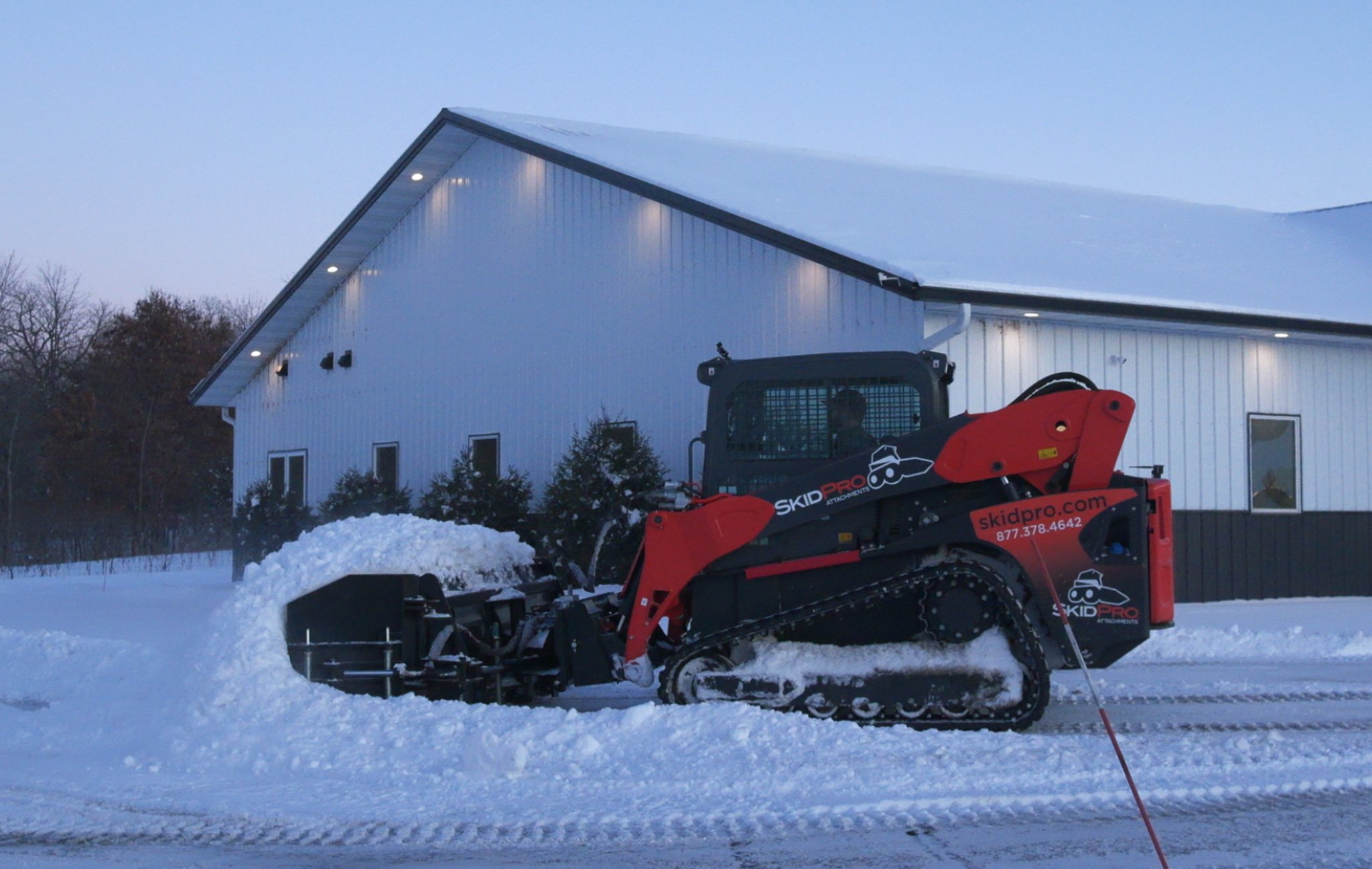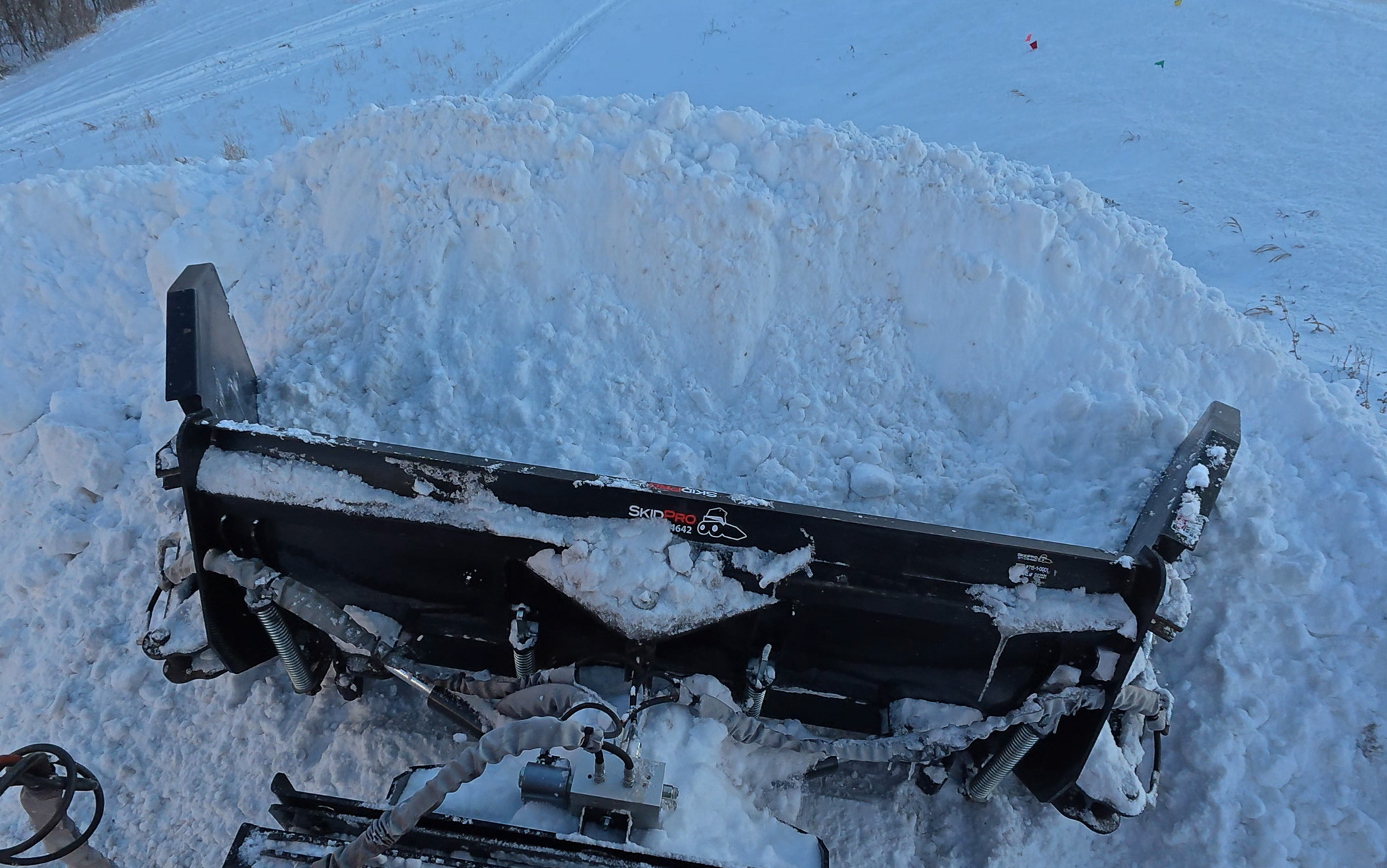 Skid Pro’s hydraulic snow blade pusher combo for skid steer is our most unique, versatile, and efficient commercial snow removal attachment which has a snow blade and pusher in one attachment. Featuring adjustable angles and hydraulic controls, this snow push blade provides superior control for clearing snow quickly and efficiently, whether for commercial parking lots, roads, or large driveways. The blade’s durable construction ensures long-lasting performance, while its ability to push, scrape, and angle makes it perfect for handling varying snow depths and terrain. Enhance your snow removal capabilities with the Skid Pro hydraulic snow blade pusher combo for a more productive winter season.