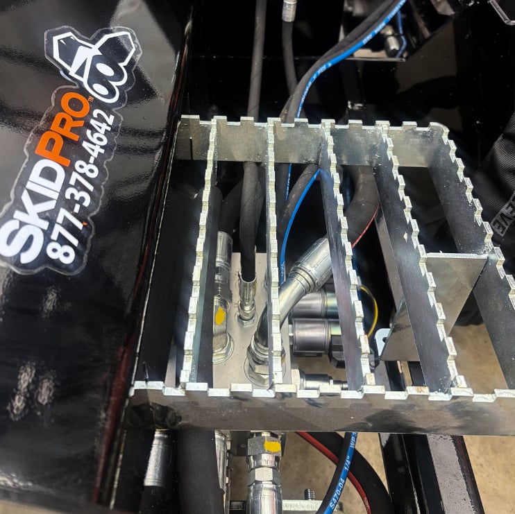- Industry exclusive side runner skid shoes give custom height setting on pavement or gravel